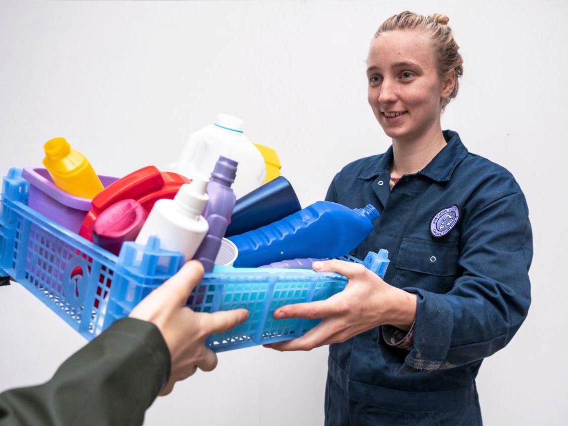 The outcome of a Collection Point is collected plastic, cleaned and sorted by type (and colour), ready to be shred and recycled. It can be collected from consumers or businesses. It's crucial that the plastic is label-free and clean for further processes, to keep a good quality of the recycled material. The cleaner and purer the plastic the higher its value.