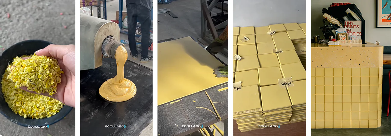 - Construction (ECOLLABO8 Line): They make "indestructible" planks for decks and fences, plus lightweight, marbled tiles for interior design.